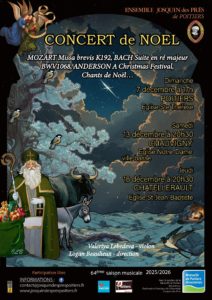 Concert de Noël par l'ensemble Josquin des Près de Poitiers, Au programme: Mozart, Bach, Anderson, et les traditionnels chants de Noël Violon: Valeriya Lebedeva Direction: Logan Beaulieux Participation libre